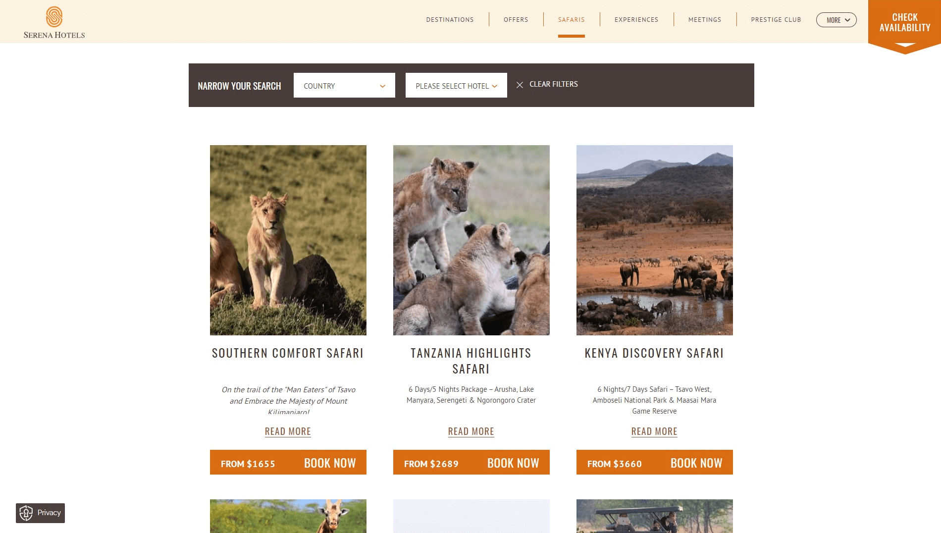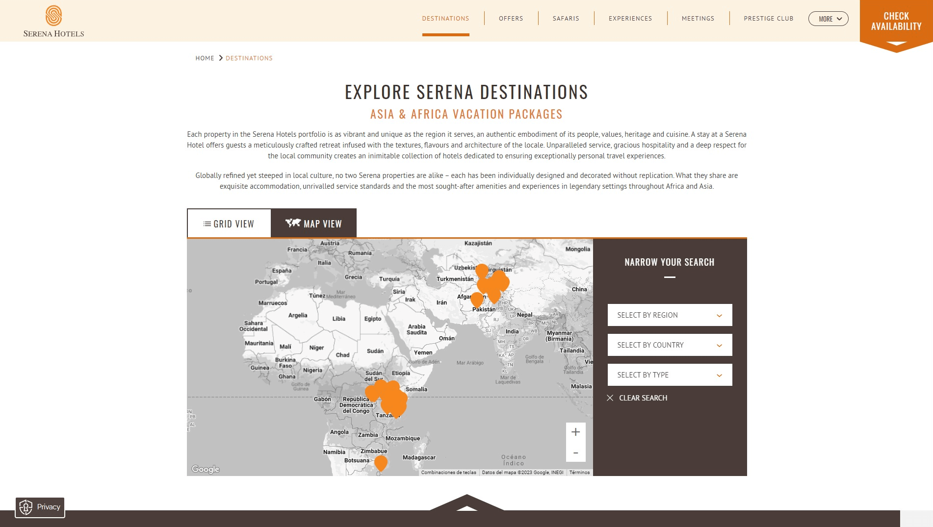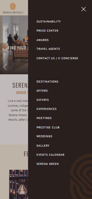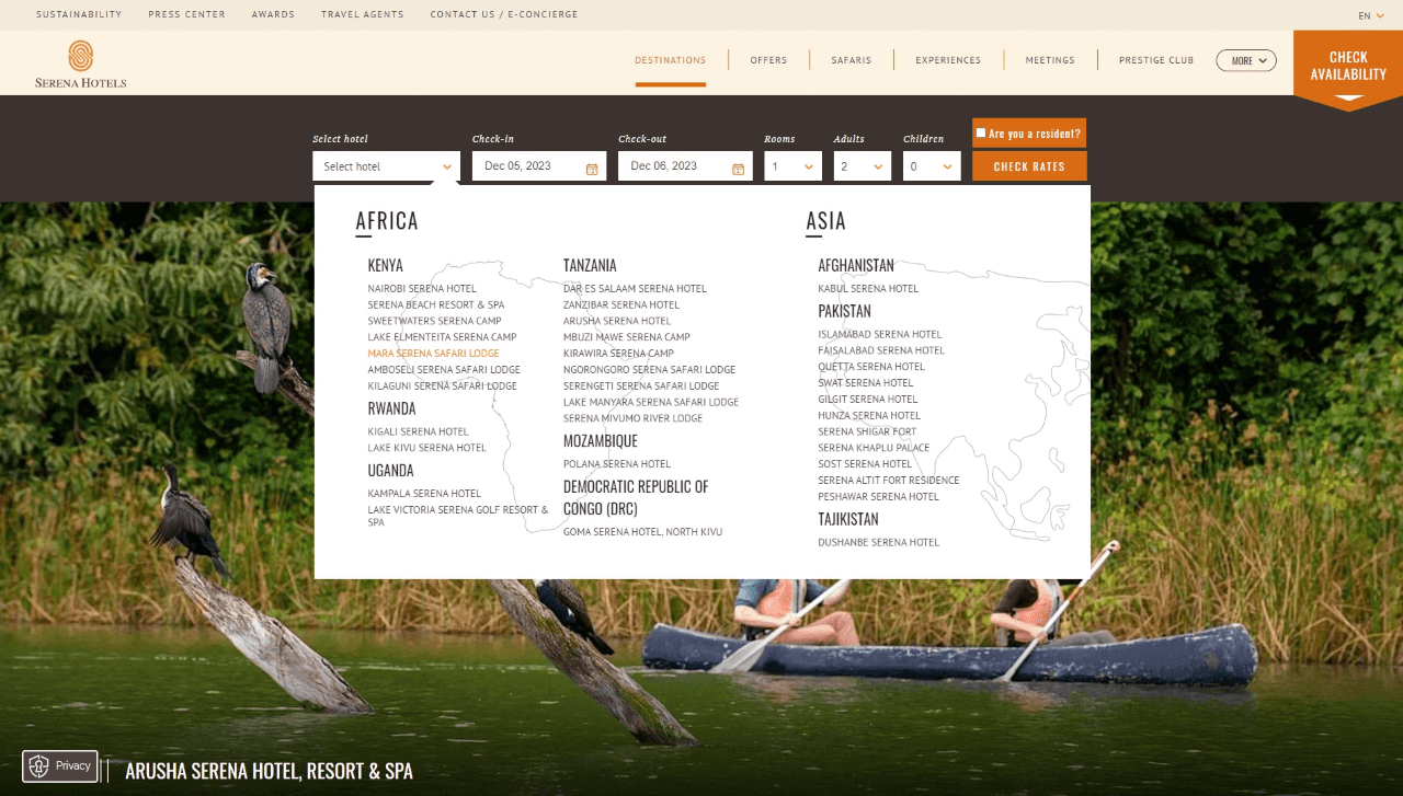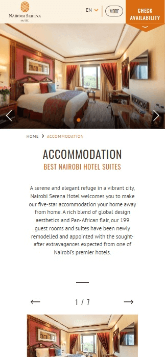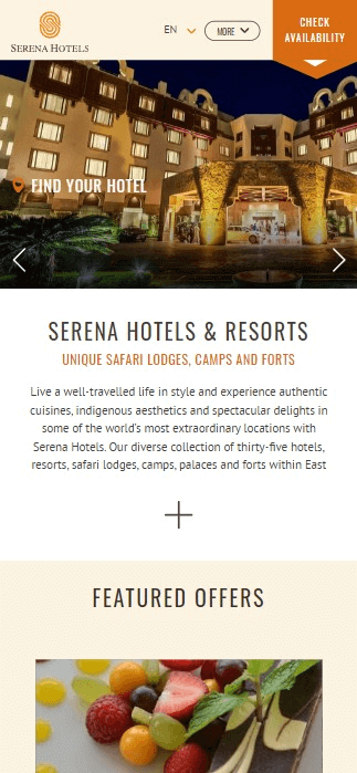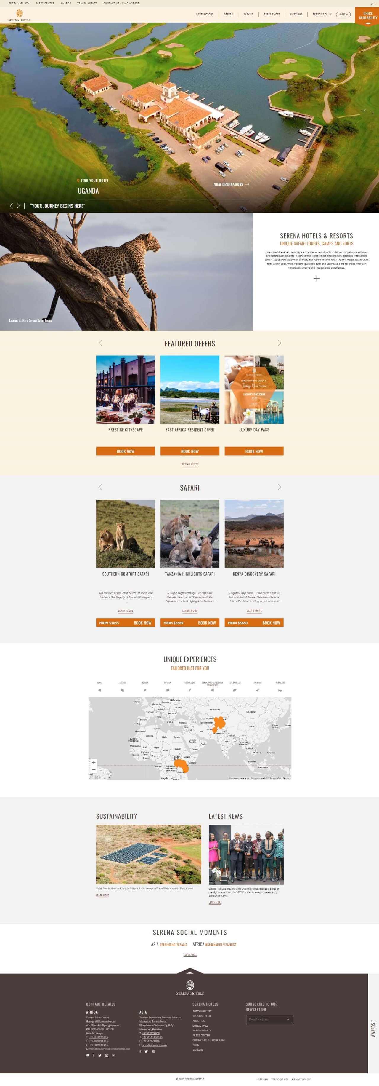 For Serena Hotels, the objective was to create a website for the group and its respective properties without differentiation between hotels. As with all projects involving multiple hotels and properties using the same template, it was necessary to accommodate the unique needs of each within a unified design. In the case of Serena Hotels, the most distinctive aspect was essentially conveying the marked difference in hotel typology, emphasizing the rural and savannah characteristics within the design.