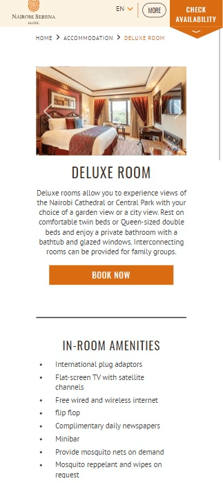 With the "Book Now" button always in view, but this time replicating the desktop version at the top right. The menu also follows exactly the same behavior as on the desktop when there are hidden menu items.